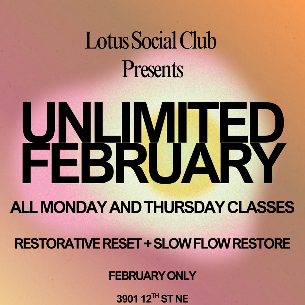 Unlimited access to all Monday and Thursday classes throughout February, allowing you to attend as often as you like.